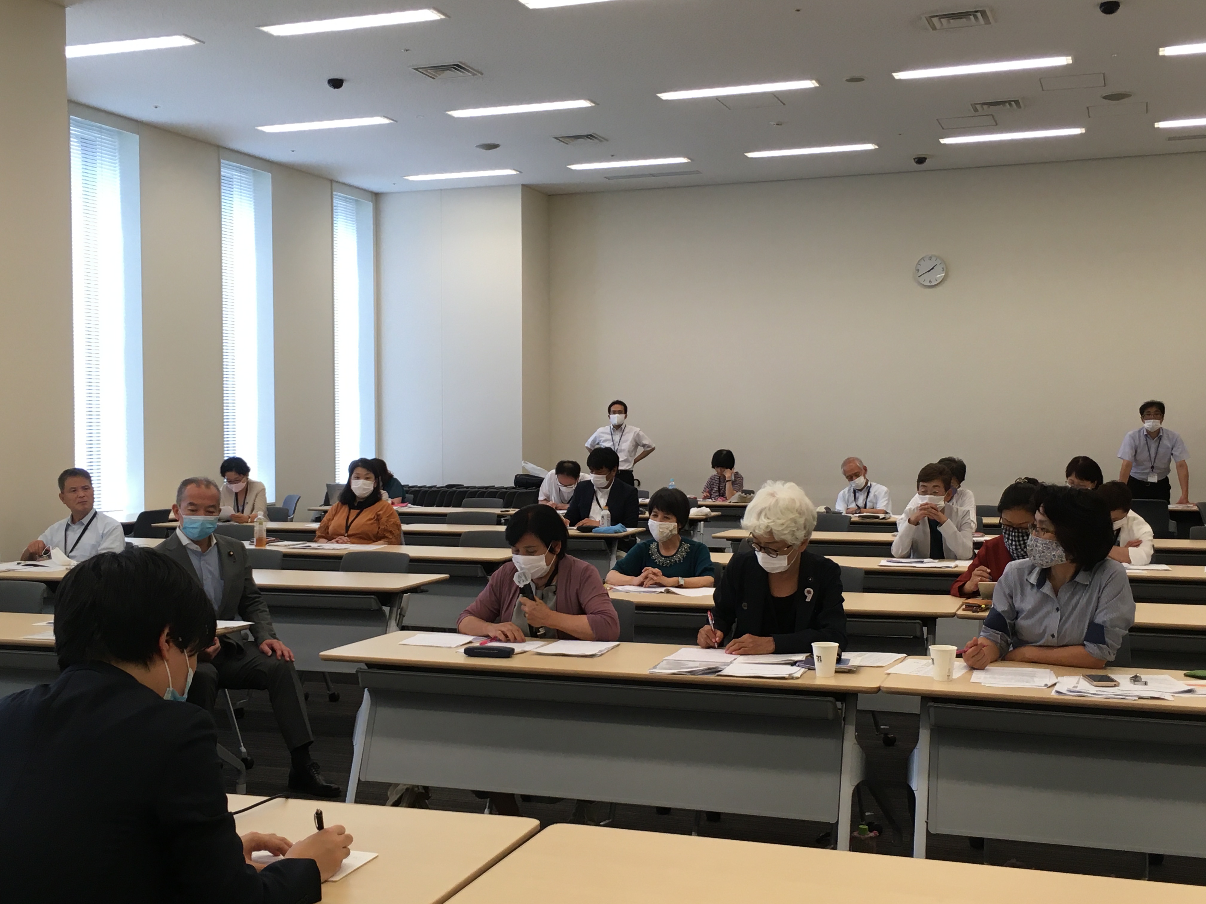 守屋県議は「学校が再開し、先生たちはこれまでの業務に加え、子どもたちの検温、給食配膳、消毒などの業務が加わっている。子どもたちもストレスをためている。一人ひとりに寄りそうためにも密を避けるためにも20人学級を実現しないと子どもたちも先生たちも大変」と発言。また川越特別支援学校を視察したことに触れて「1つの教室を間仕切りして3つの学級が使っている状態。校長は『以上児童生徒を受け入れられない』と話をしていた。こうした実態を文部科学省はつかんでいるのか」と問いかけました。
